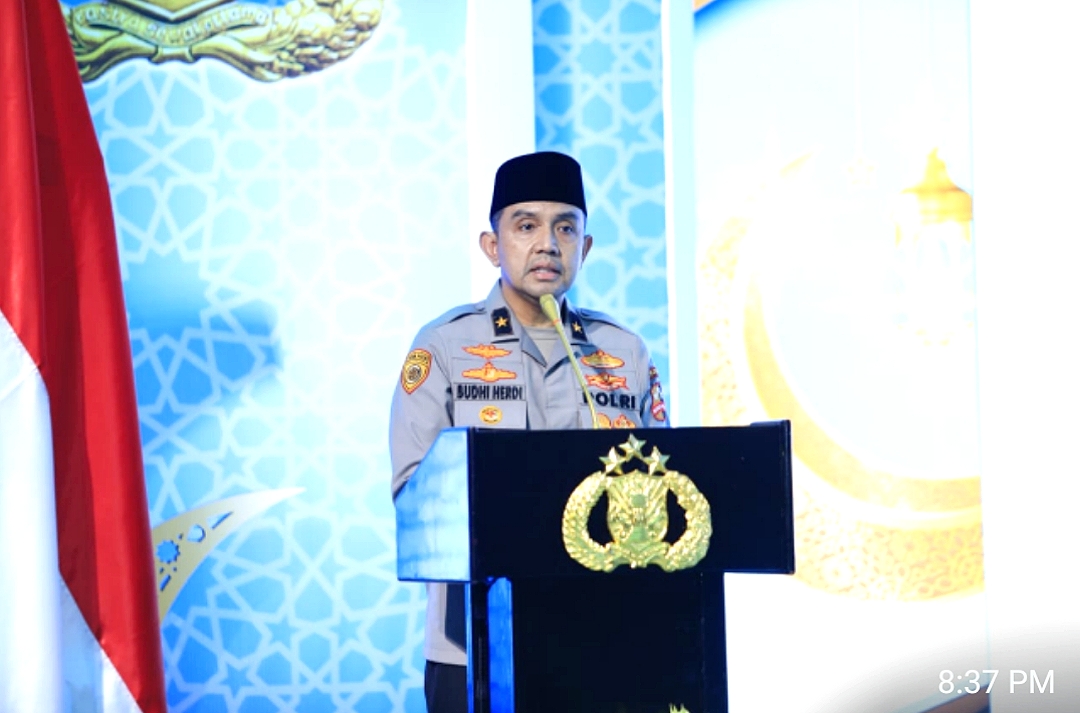 Polri menggelar kegiatan buka puasa bersama tokoh agama, tokoh masyarakat, serta warga sekitar di kawasan pembangunan SMA Kemala Taruna Bhayangkara, Gunung Sindur, Kabupaten Bogor, Kamis (5/3/2026).