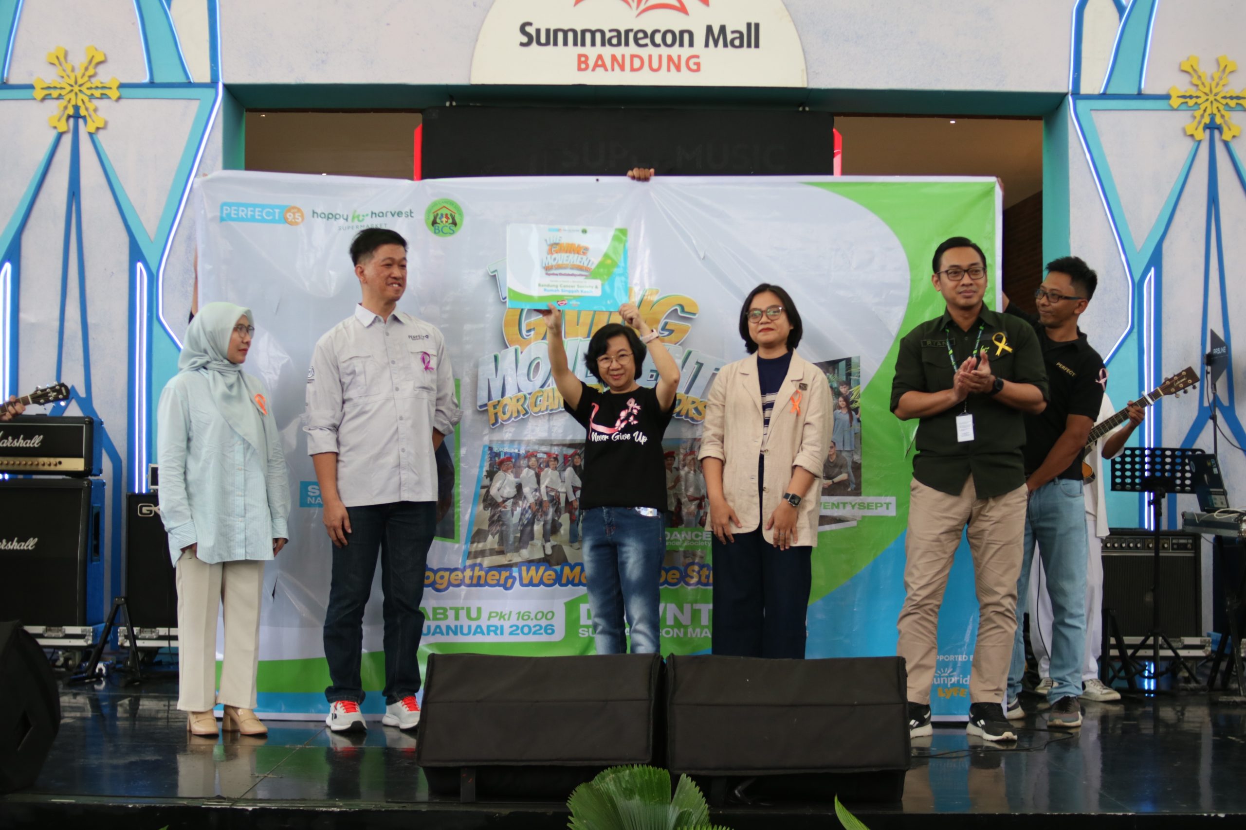 Puncak dari rangkaian program ini diwujudkan melalui penyelenggaraan acara bertajuk The Giving Movement for Cancer Survivors – Together, We Make Hope Stronger yang sukses digelar pada 10 Januari 2026 di area Downtown Walk Summarecon Mall Bandung. Acara ini yang turut didukung oleh Sunpride LYFE dan Naraya Indonesia, menjadi momen penyerahan donasi secara simbolis oleh PERFECT Water, Happy Harvest, dan Summarecon Mall Bandung kepada Bandung Cancer Society, yang diterima langsung oleh Yanti Setiawadi selaku pendiri dan ketua Bandung Cancer Society sekaligus pengelola Rumah Singgah Kasih.