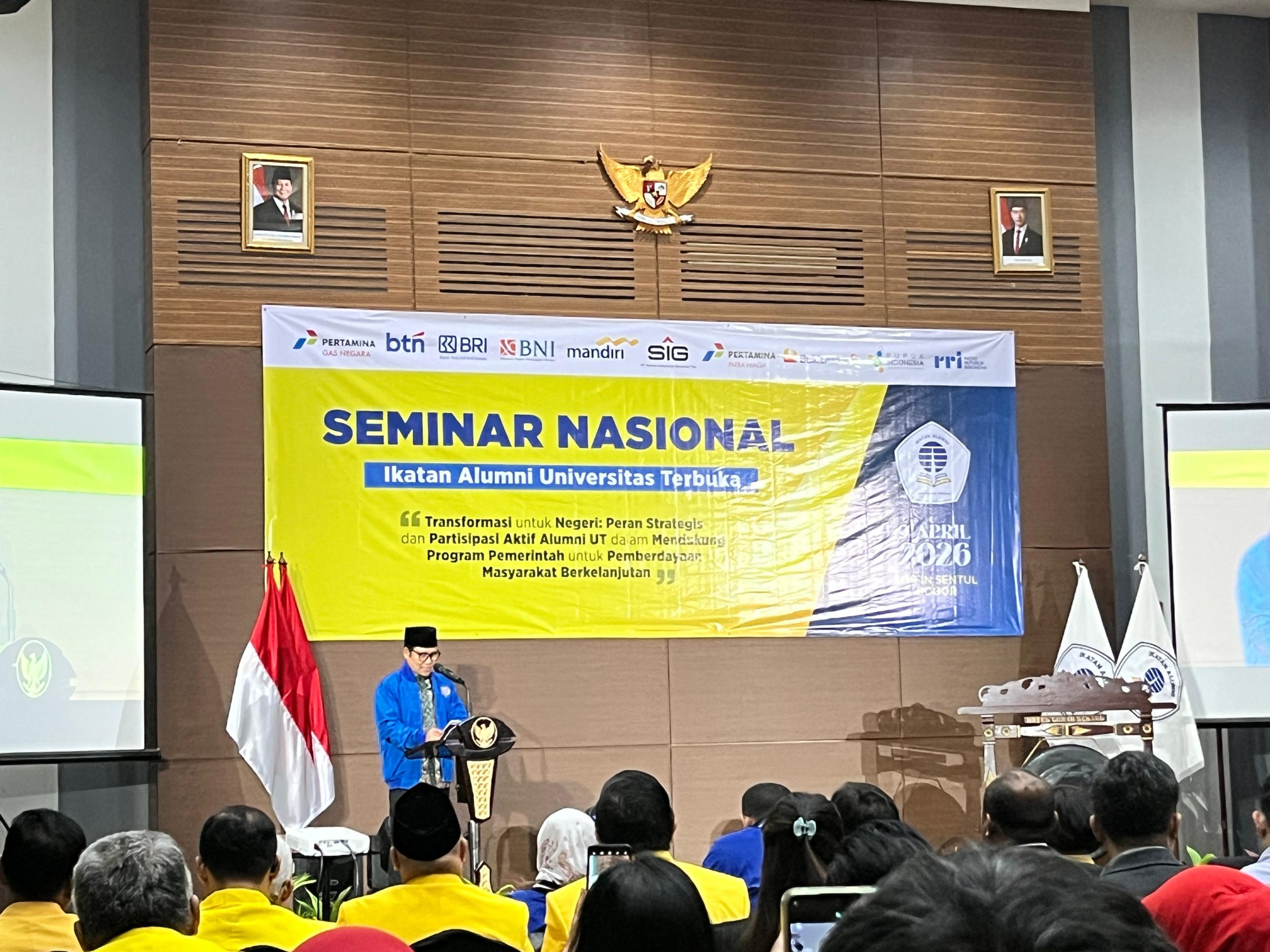 Acara tersebut secara resmi dibuka oleh Menteri Koordinator Bidang Pemberdayaan Masyarakat, Dr. (H.C.) Drs. H. Abdul Muhaimin Iskandar, M.Si., yang juga hadir sebagai keynote speaker dalam Seminar Nasional bertema “Transformasi untuk Negeri: Peran Strategis dan Partisipasi Aktif Alumni UT dalam Mendukung Program Pemerintah untuk Pemberdayaan Masyarakat Berkelanjutan.”
