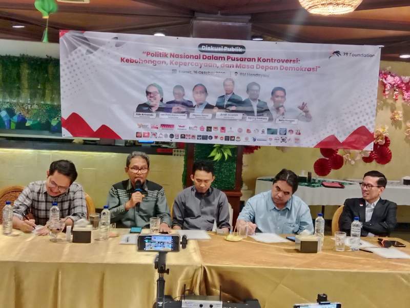 Jakarta, Metroheadline.net – Sekitar puluhan organ relawan pendukung Prabowo-Gibran yang tergabung dalam 78 Foundation mengadakan diskusi publik dengan tema “Politik Nasional Dalam Pusaran Kontroversi: Kebohongan, Kepercayaan, Dan Masa Depan Demokrasi”, pada hari Kamis, 16 Oktober 2025 di Restoran Handayani, Jakarta.