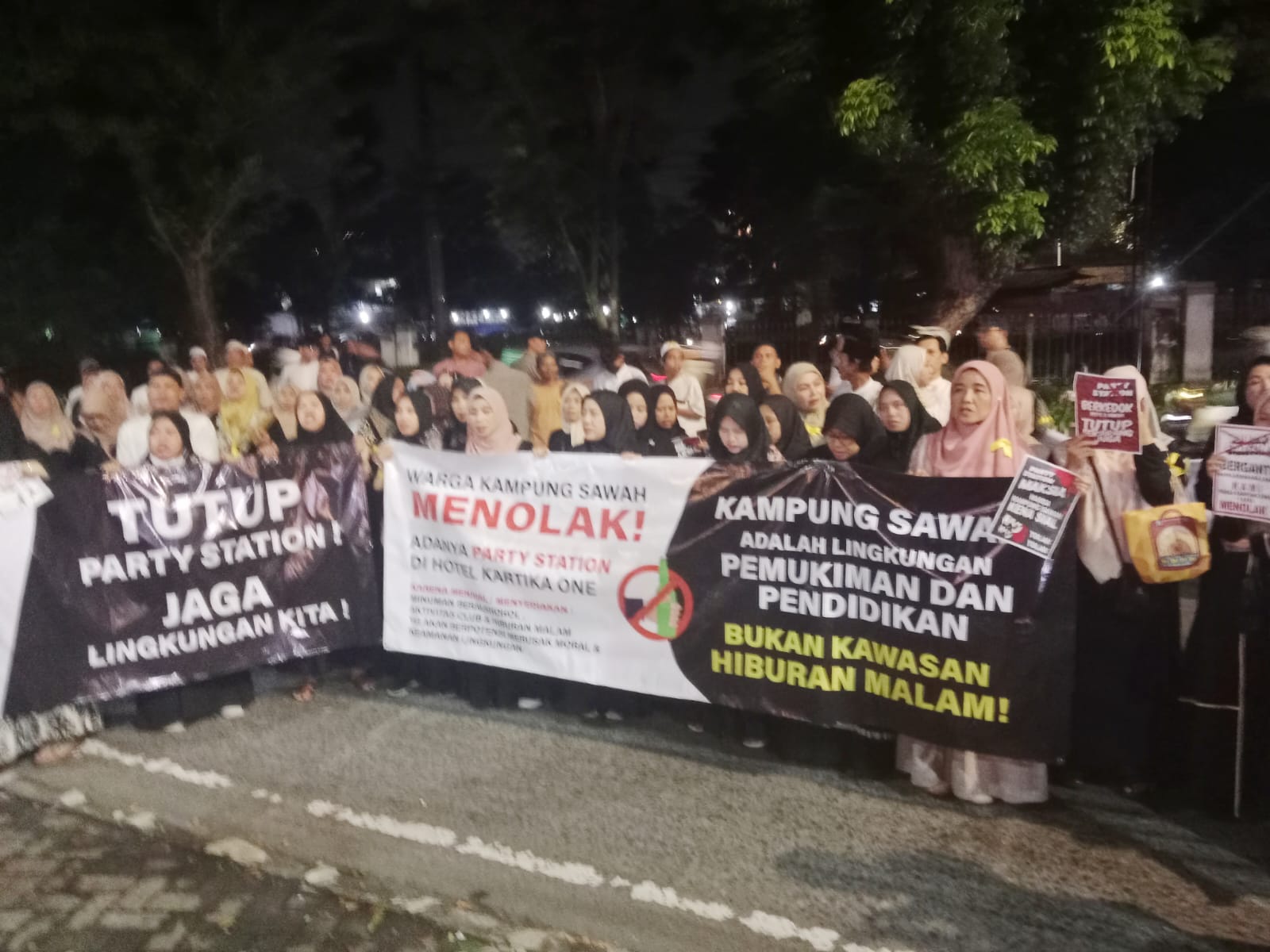 METROHEADLINE.NET , Jakarta — Warga RW 01 dan RW 02 Kampung Sawah, Kelurahan Srengseng Sawah, Kecamatan Jagakarsa, Jakarta Selatan, menolak keberadaan tempat hiburan malam Party Station yang beroperasi di Kartika One Hotel, Lenteng Agung.
